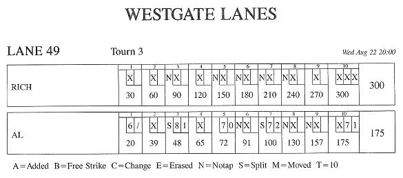 The first time anything connected to a bowling score of mine said 300. Yes, it was the Wednesday Summer Mixed League’s no-tap tournament, and yes, I had five no-tap strikes in it, but the pressure is still similar when you’re actually trying for it. The funny thing is that it happened on my birthday, with Dick Asacker, a former association director, saying he hoped I got a 300 when he gave me his birthday wishes on Facebook, and I told a couple of other people on Facebook who wished me a happy birthday in a similar manner that I might get one that way. I guess some things were meant to be. 😀