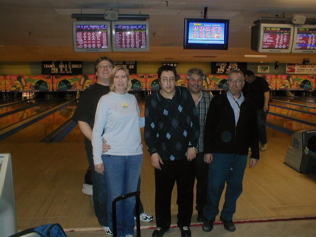 Bob Hamilton...promised him he could be at the top of the scrapbook.My summer league team...Front: Joy Falese; Back (L-R): Richie, Brian Shea, Ralph MarpleSean Richard, who bowled the exhibition against Mark Roth in December 2007Brian "Hawk" EarleChris Mark, the guy who originally drilled my High-VoltageHarry Thibeault, Jr.Junior Minassian, the managerBev, the lady usually at the control desk when I practiceThe Lounge Lizards: Front (L-R): Melissa, Dave, and Debbie Randall, my cousins; Back: Bob FosdickRay DiSanto, Jr., owner of USA Bowling Pro Shops (and my coach), helping an unknown customer. His wife Anna is in the right edge of the photo.Ron Haynes. He was in my summer league, but bowls the Westgate Mixed League in the winter.Debbie Butler, another bowler I met in my summer league who bowls in the Westgate Mixed League.The Pin Pals: (L to R) Patrick Padula, Carl Benson, Helen Sprissler, Ted Sprissler, meJoAnn and Shawn Coles. Shawn is the secretary of my winter league in the 2008-09 season, the Brunswick Mixed LeagueEric Nordstrom and Lauren Topper, two bowlers in the Brunswick Mixed League. Eric is the Sprisslers' nephew.TNT, Summer 2009: (L to R): Me, Bill Macomber, Bonnie MacDonald, Rob DickensThe Flintstones, Winter 2009-10: (L to R): John Ruhl, Eileen Ruhl, Richie, Carl Benson, Patrick PadulaMe (in USBC shirt) with Al D’Aquino. Along with “MikeHL,” Al is another bowler I first “met” online.Pinfall Wizards (L to R): Me, Carl, Pat, Berta Sloane, Brian SloaneWestgate 1, the 2012-13 junior travel league champions (L-R: Chris Silveri, Kevin Thibeault, Nick Sauve, Stephen Major, Steve Hamilton (coach)